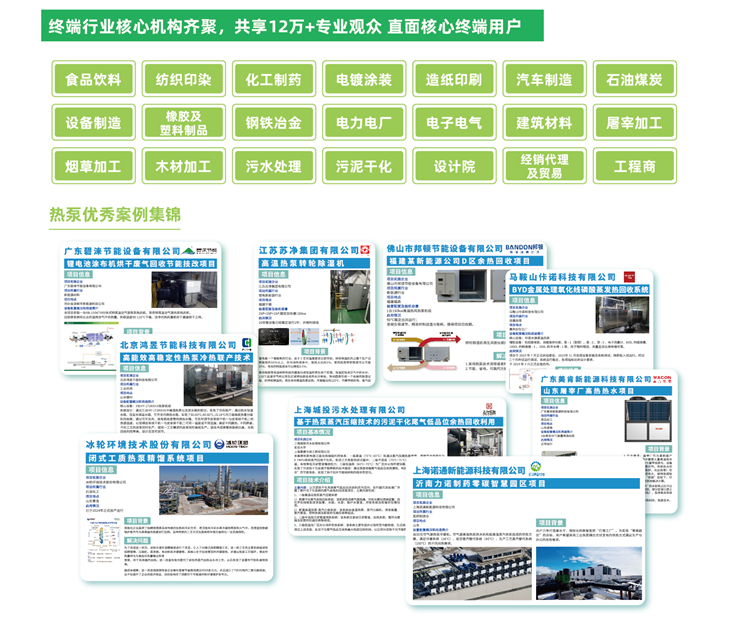 2026年上海綠色智造與節(jié)能技術(shù)展旗下的工業(yè)熱泵主題展將于2026年6月9-11日在上海|國家會(huì)展中心(虹橋)盛大啟幕工業(yè)熱泵主題展預(yù)計(jì)規(guī)模達(dá)10,000平米,將吸引終端領(lǐng)域?qū)I(yè)觀眾20,000多名,展會(huì)將深度布局行業(yè)終端,打造工業(yè)熱泵示范項(xiàng)目,助力企業(yè)直面新能源、電鍍涂裝、石油化工、電力工廠、紡織印染、食品飲料、污泥干化等領(lǐng)域終端及環(huán)保領(lǐng)域用戶。